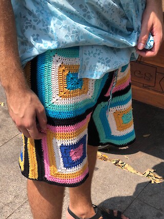 Granny Square worn by a young men. Crochet represents much more than just craftsmanship. Everyone has the free way to interpret the style they want to embrace. It’s inclusive design for everyone and showcases how design and fashion can be used to express and preserve cultural identity.