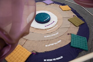 Dialogue Design combines a mediation-based approach with spatial design, creating new frameworks for empathic exchange to bring people and groups in conflict back into a constructive dialogue. This is achieved by means of the portable ‘Dialogue Tent’, a dome-shaped safe space, and various mediation tools that provide space in semi-public places to mediate between conflicting parties.