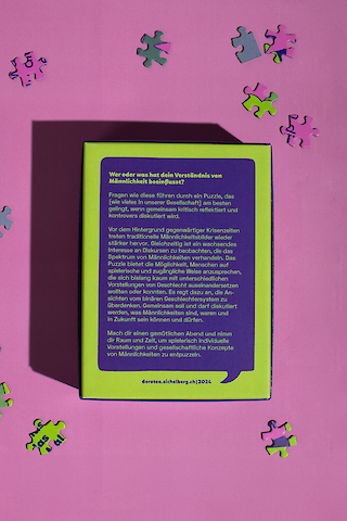 Mach dir einen gemütlichen Abend und nimm dir Raum und Zeit, um spielerisch individuelle Vorstellungen und gesellschaftliche Konzepte von Männlichkeiten zu «entpuzzeln».