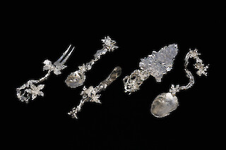 Als Synthese aus Schmuck, Besteck und Accessoire verweist opulence silverware auf die fehlende Vielfalt unseres Bestecks sowie auf dessen sterile und konforme Gestaltung. Mit seinen floralen und organischen Ästhetiken reflektiert das Besteck-Set auf eine überaffirmative, ironische Art und Weise gegenwärtige Ernährungswelten und hyperindividualisierte Food-Hypes: ihre Sehnsucht nach Natur und ihr Versprechen, uns mit Zugehörigkeit und Einzigartigkeit zugleich zu schmücken.