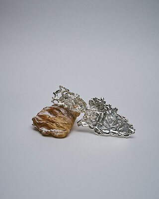 Durch das Schleudergussverfahren und den experimentellen Prozess des Silbergusses gehen Wachsformen verloren und zurückbleiben unikate Stücke.