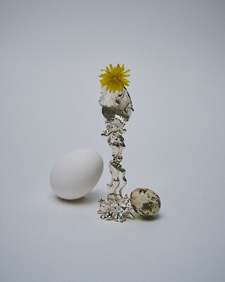 As a synthesis of jewellery, cutlery and accessories, opulence silverware refers to the lack of variety as well as the sterile and conformist design of our cutlery. With its floral and organic aesthetics, the cutlery set reflects contemporary nutritional concepts and hyper-individualised food hypes in an over-affirmative, ironic way: their desire for nature and their promise to grant us a sense of belonging and uniqueness at the same time.