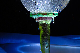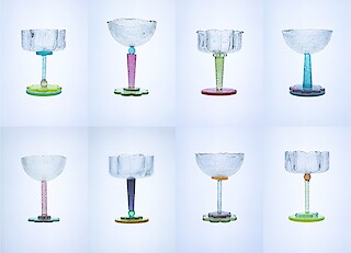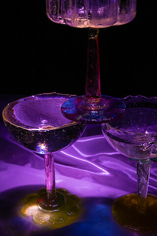 Sugar is a socio-culturally highly charged subject. Formerly perceived as a luxury for the upper classes, today it is considered an unhealthy ingredient with an addictive factor. In its liquid state, sweet, sticky and glittering, it can be moulded in many different ways – including as a transient status symbol. Luxury and exclusivity, wealth and abundance materialise in the colourful champagne coupes. Their playful shapes evoke feelings of opulence, kitsch and extravagance. Filled with champagne and arranged as an assemblage, they become an installation to melt away.