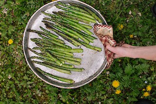 "May is a a delicate month. A lot is already growing, but not yet ready for harvest. That's why we have a baked celery with wild garlic capers today. It is easy to store and therefore available all year round.“