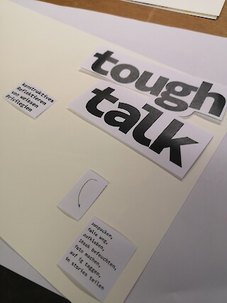 tough talk makes this internalised racism visible and encourages self-reflection in a fun way by means of an interactive booklet, providing practical support to learn new ways of behaviour individually. It also functions as a complementary sensitising tool in workshops and shows how diversity can be reflected constructively. While many anti-racism campaigns focus on sensitivity, the provocative tone of tough talk is intended to cause discomfort. The booklet addresses people directly and takes them to task about confronting 'white' privilege.