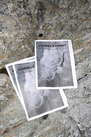 Silent witnesses to this loss accompany the magazine: glass monuments that symbolise the strength, transience and fragility of ice. They have been placed at sites of disappearance. The magazine itself was carried to a mountain hut – back to the origins. There, it remains for hikers as a reminder of this farewell.